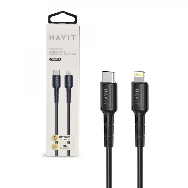 Кабель Type-C - Lightning HAVIT HV-CB6239 PD20W 1м