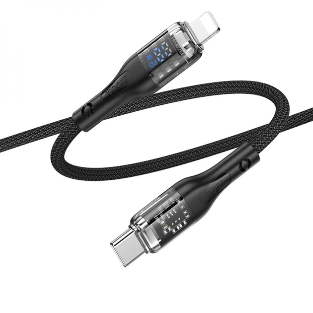 Кабель USB Hoco U115 Transparent PD20W With Display Type-C to Lightning 1.2m Колір Чорний