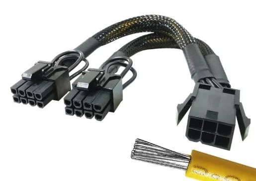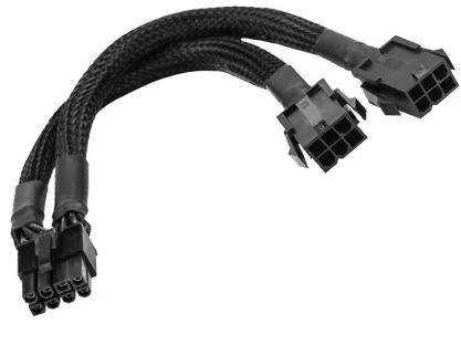 Кабель перехідник в обплетенні 18 AWG 20 см GPU 6 pin -> 2х GPU PCI-E (6+2) VGA на відеокарту Чорний