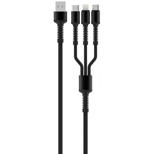 Дата кабель USB 2.0 AM to Lightning + Micro 5P + USB-C 1.2m 3.0A (PD60W data) Black ColorWay (CW-CBPDU3060-BK)