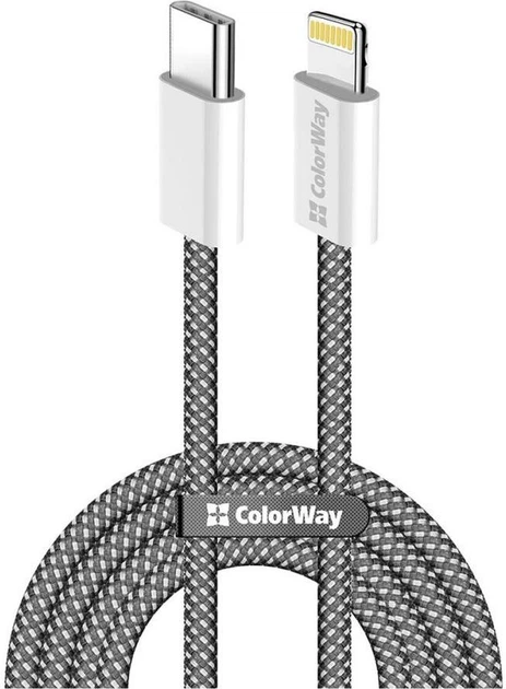 Кабель ColorWay USB Type-C-Lightning, PD Fast Charging, 3.0А, 2м, Grey