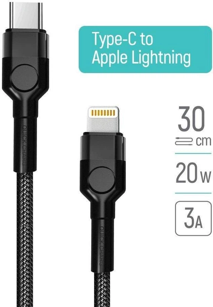 Кабель ColorWay USB Type-C - Lightning (M/M), PD Fast Charging 20W, 3.0 А, 0.3 м, Black (CW-CBPDCL054-BK)