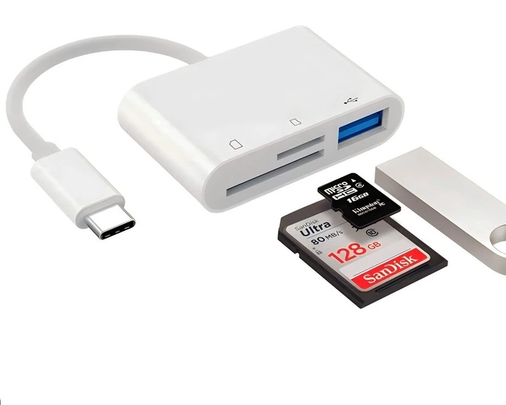 Перехідник 3 в 1 з Type-C на USB 3.0 + SD/TF Адаптер для USB-C на флешку і SD TF картрідер (485700)