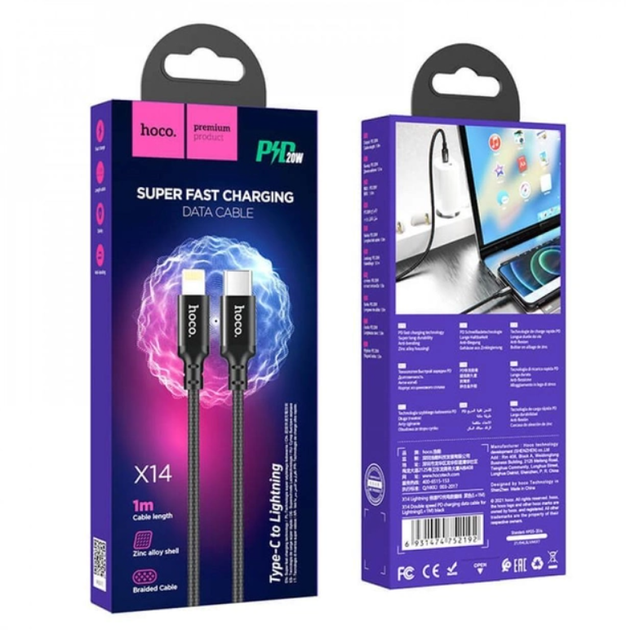Кабель USB HOCO X14 Type-C - Lightning (20W) (2М) Чорний