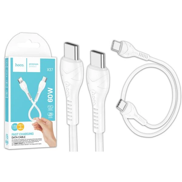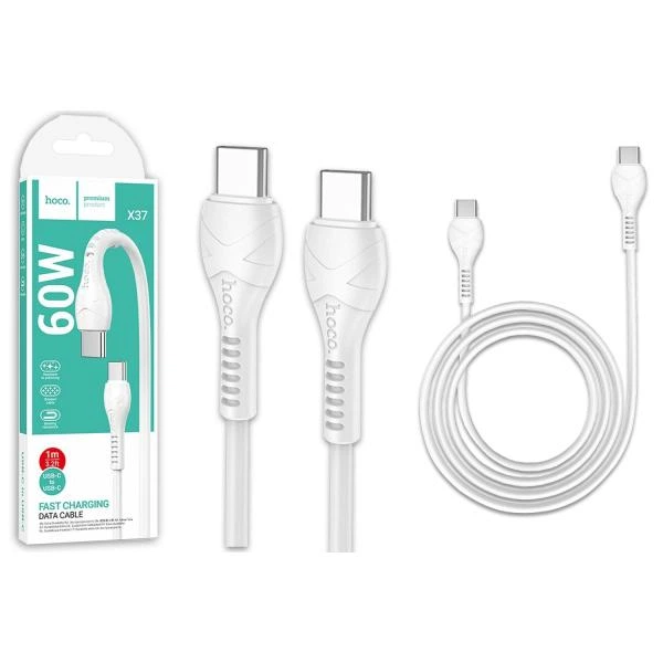 Кабель Hoco X37, Type-C-Type-C, 60W, White, довжина 1м