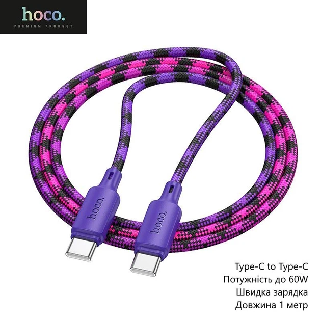 Кабель Hoco X116 (Type-C to Type-C, потужність до 60W, швидка зарядка, довжина 1 метр) - Фіолетовий