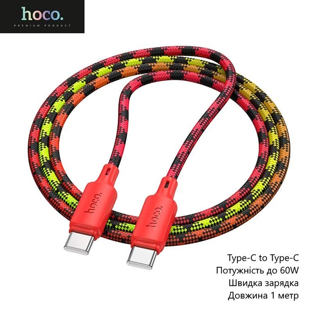 Кабель Hoco X116 (Type-C to Type-C, потужність до 60W, швидка зарядка, довжина 1 метр) - Червоний