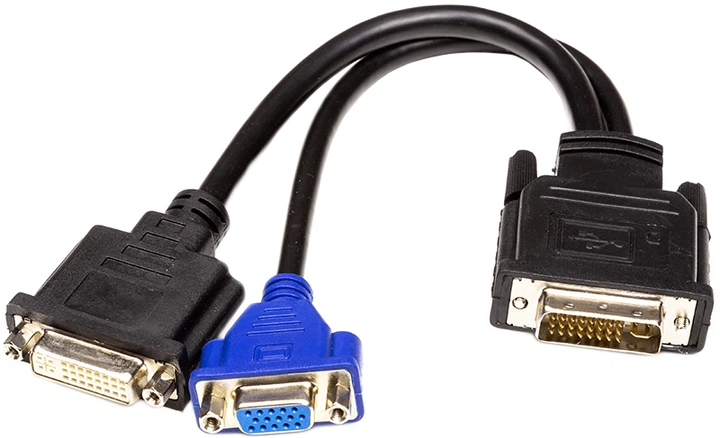 Перехідник PowerPlant DVI-I (M) - DVI-D (F) + VGA (F) 0.3 м (CA912551)
