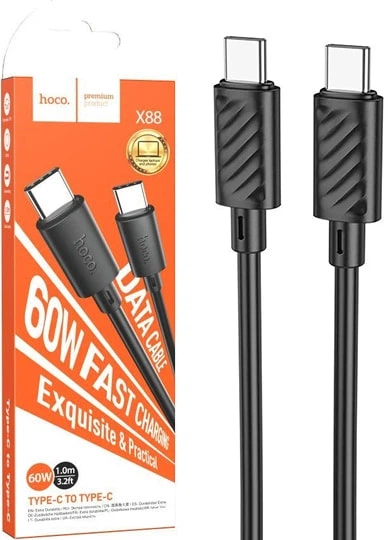 Інтерфейсний кабель Hoco X88 60W TypeC-TypeC 1m Black (33511)
