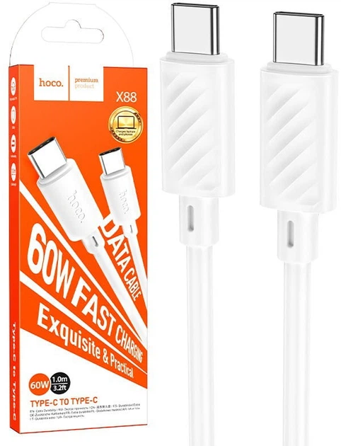 Кабель USB Hoco X88 Gratified 60W Type-C to Type-C 2m Білий