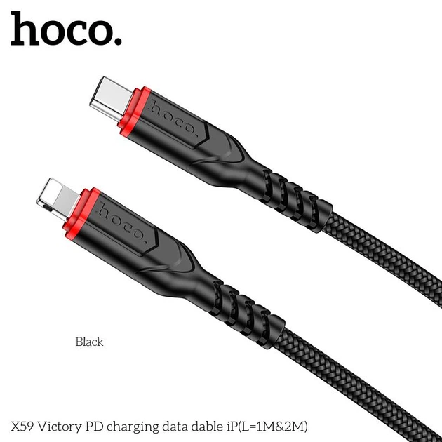 Кабель USB C to Lightning 20W PD (1m) - Hoco X59 Victory - Black