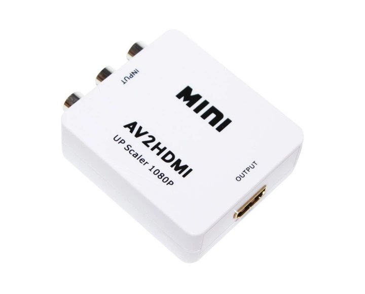 Конвертер Mini, AV to HDMI, ВХІД 3RCA(мама) на ВИХІД HDMI(мама), 720P / 1080P, White, BOX