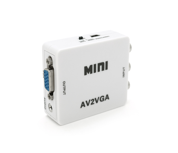 Конвертер Mini, AV to VGA, ВХІД 3RCA(мама) на ВИХІД VGA(мама), 720P - 1080P, White, BOX