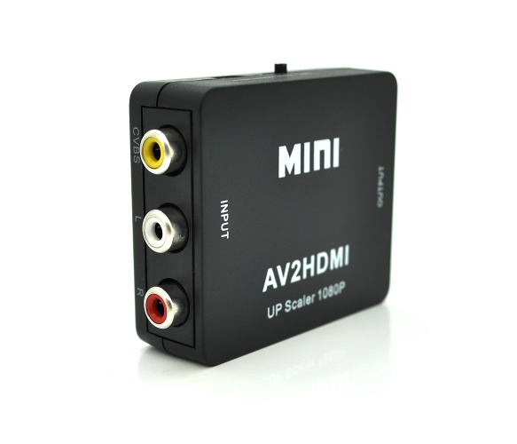 Конвертер Mini, AV to HDMI, ВХІД 3RCA(мама) на ВИХІД HDMI(мама), 720P - 1080P, Black, BOX