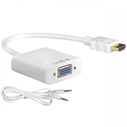 Конвертер HDMI (тато) на VGA(мама) 10cm, White, 4K / 2K, Пакет + AUDIO Q250