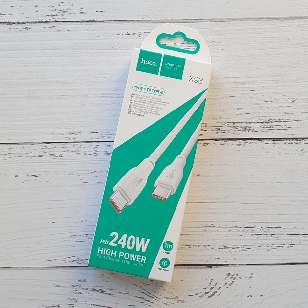 Кабель Hoco X93 PD 240W Type-C to Type-C (стандарт швидкої зарядки PD3.1) 1м Білий