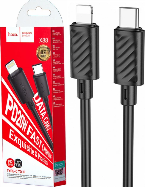 Інтерфейсний кабель Hoco X88 PD20W TypeC - Lightning 1m Black (35432)