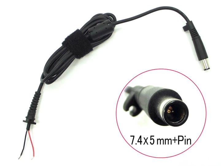 DC кабель (7.4 * 5.0 + Pin) для DELL, HP (45W, 65W, 90W) 2 - дроти! Від блока живлення до ноутбука. Кабель з феритовим фільт