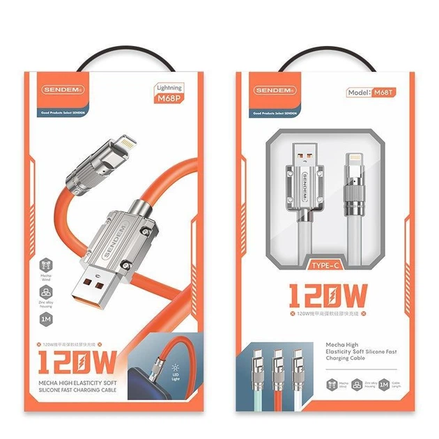 Кабель силиконовий USB>Lightning SENDEM M68P 120W 1M ORANGE