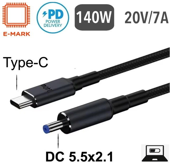 Кабель с триггером PD 140W Type-C на DC 5.5x2.1 для зарядки ноутбука и другой техники на 20V (1.8 метра)