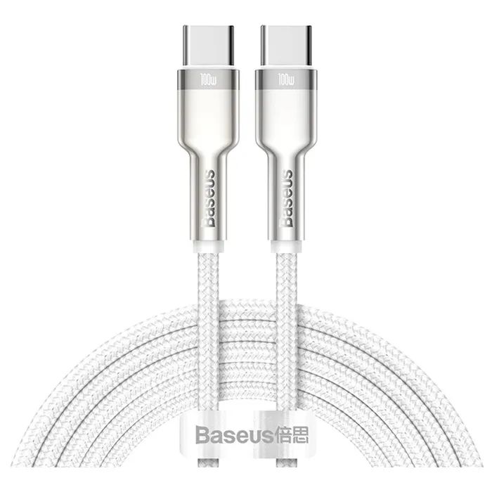 Дата кабель USB-C to USB-C 2.0m Cafule Metal PD 100W white Baseus (CATJK-D02) CATJK-D02