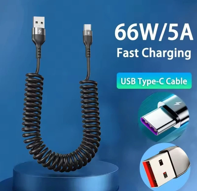 USB A - Type C кабель 5А 66W 2 метр Spring wire A-C black