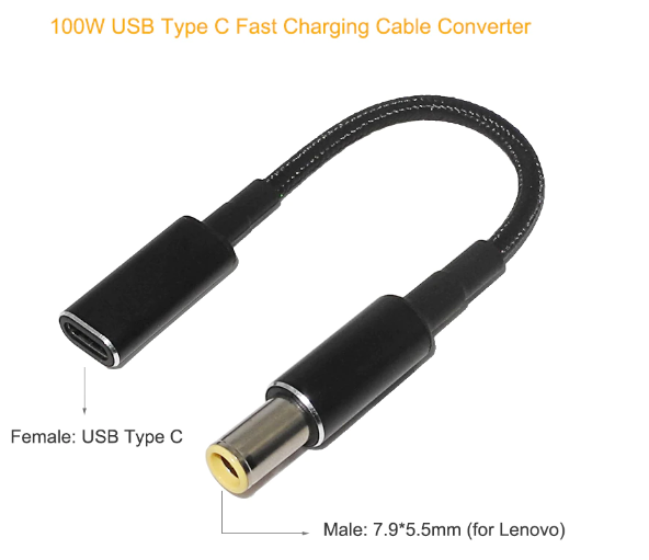 Кабель для заряджання ноутбука Lenovo Type-c female to 7.9X5.5(Type-c-гніздо/7.9X5.5-штекер) PD100W