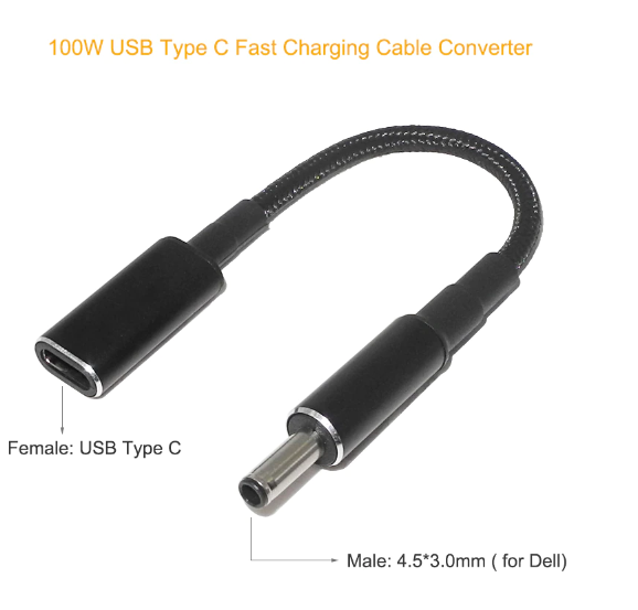 Кабель для заряджання ноутбука Dell Type-c female to 4.5x3.0(Type-c-гніздо/4.5x3.0-штекер) PD100W