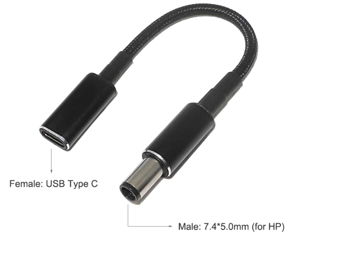 Кабель для заряджання ноутбука HP Type-c female to 7.4X5.0(Type-c-гніздо/7.4X5.0-штекер) PD100W