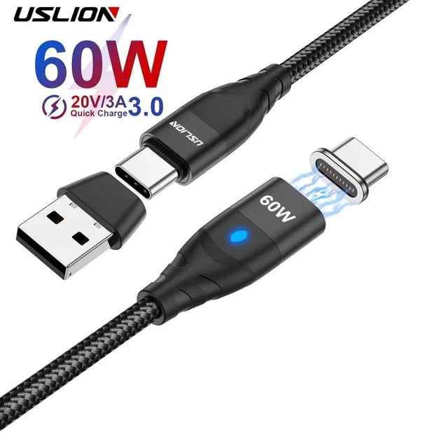 Магнітний кабель Uslion 2в1 Type-C-Type-C + Usb-a-Type-c PD 60w 2м Fast Charge Black