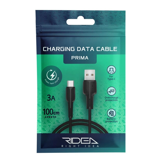 Кабель USB Ridea RC-M121 Prima Fast Charging USB 60W – Type C 3A 1m Black