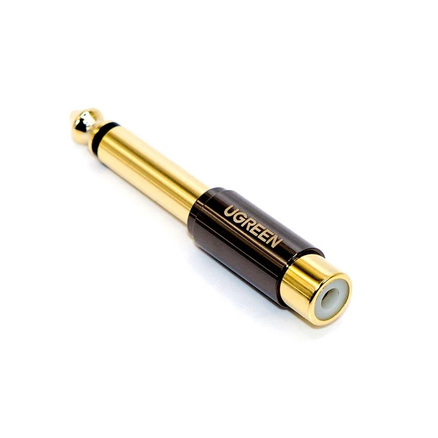 Адаптер аудіо, штекер 6.3 моно - гніздо RCA, UGREEN, Hi-Fi, Gold, металевий корпус