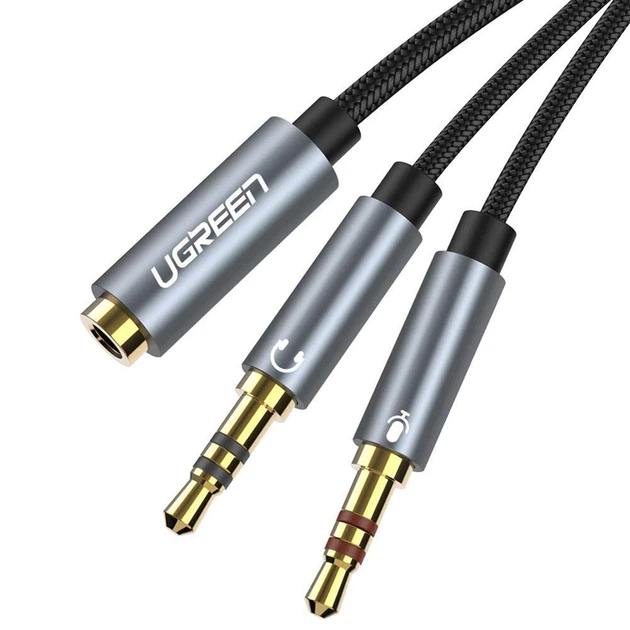 Адаптер аудіо, гніздо 3.5мм (4pin) - штекер 3.5мм (навушники) + штекер 3.5мм (MIC), UGREEN, з кабелем