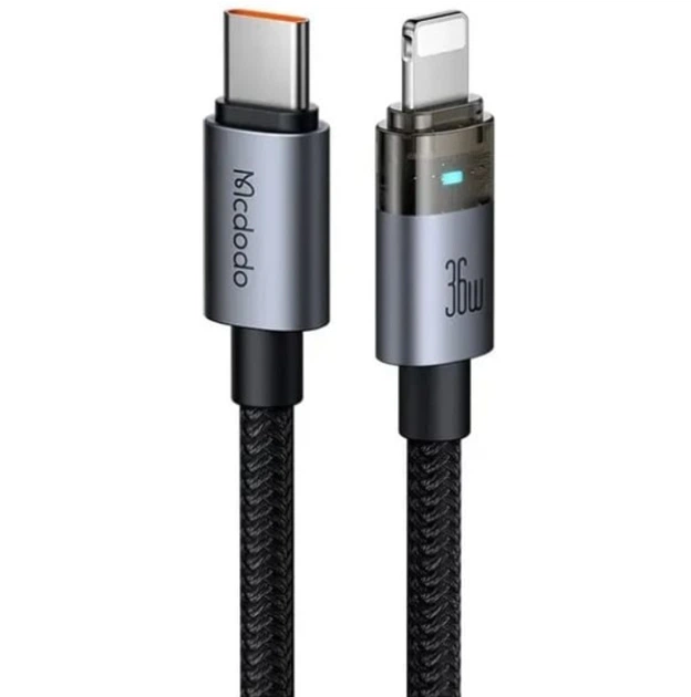 Кабель McDodo 36W USB-C to Lightning Transparent Cable with Charging Light 1.2m CA-6940 Black