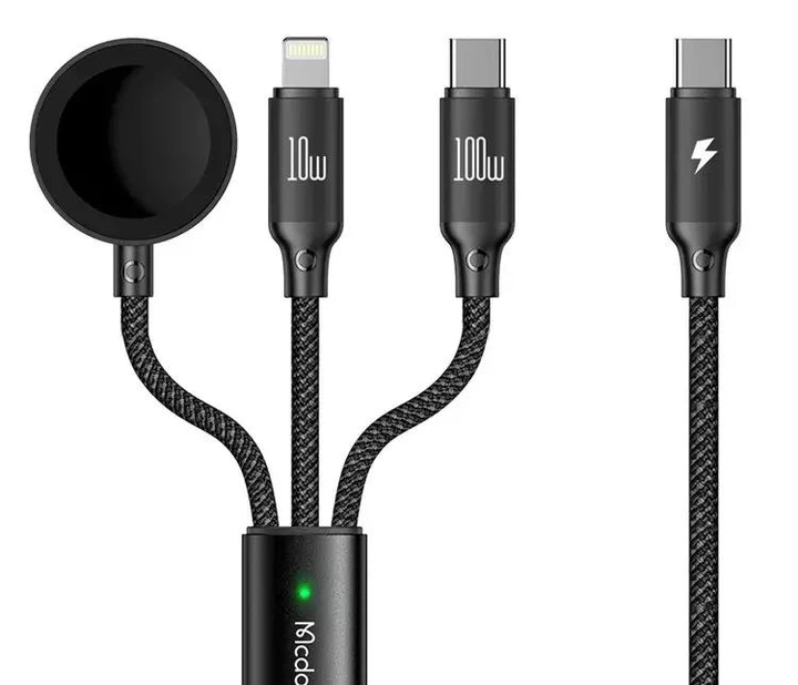 Кабель McDodo 3 в 1 USB-C Type-C Lightning MagSafe 100 Вт 1,2 м Чорний CA-4940