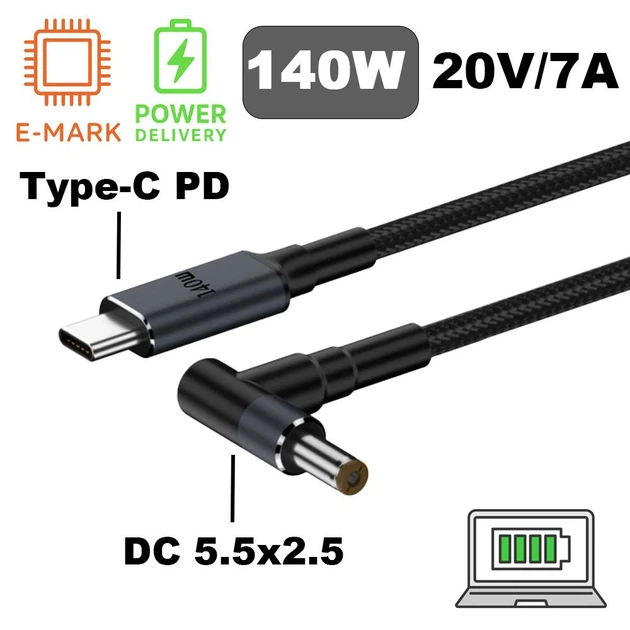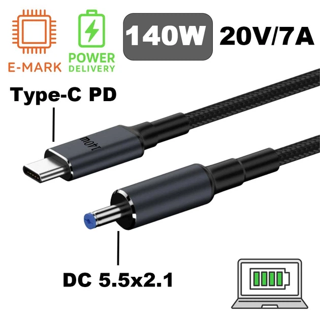 Кабель-перехідник PD 140W Type-C на DC 5.5x2.5 (2.1) на 20V вольт 1.8 м для заряджання ноутбука з тригером (1.8 метри) Power
