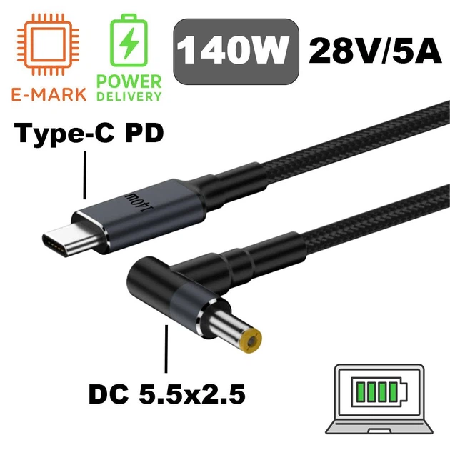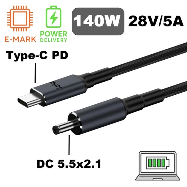 Кабель-перехідник PD 140W Type-C на DC 5.5x2.5 (2.1) на 28V вольт 1.8 м для заряджання ноутбука з тригером (1.8 метри) Power