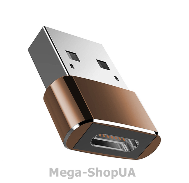 Перехідник USB Male to Type-C Female Adapter Converter. Адаптер TypeC (мама) - USB (тато) Коричневий