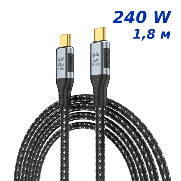 Кабель Lem Berger, USB-С 4.0 для швидкої зарядки до 240W, для передачі даних до 40Gbps, підтримка 8K, довжина 1,8 м, 3309810