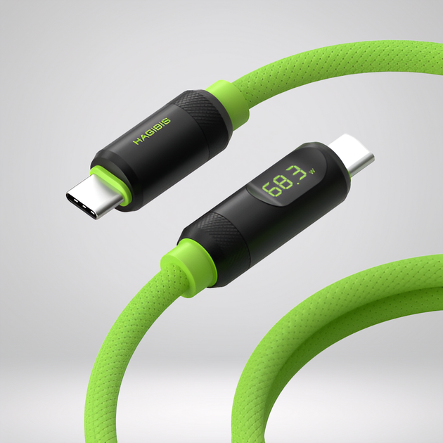 Кабель USB4 HAGiBiS SX02 40Gbps 240W з LED-дисплеєм плетений (1 м), Green
