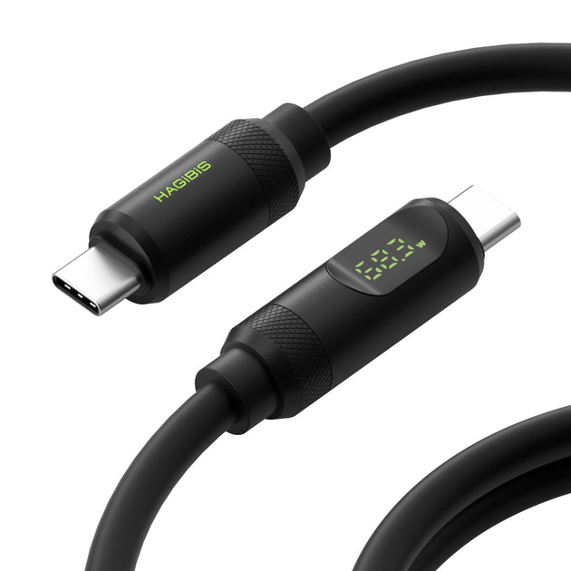 Кабель USB4 HAGiBiS SX02 40Gbps 240W з LED-дисплеєм силіконовий (1 м), Black
