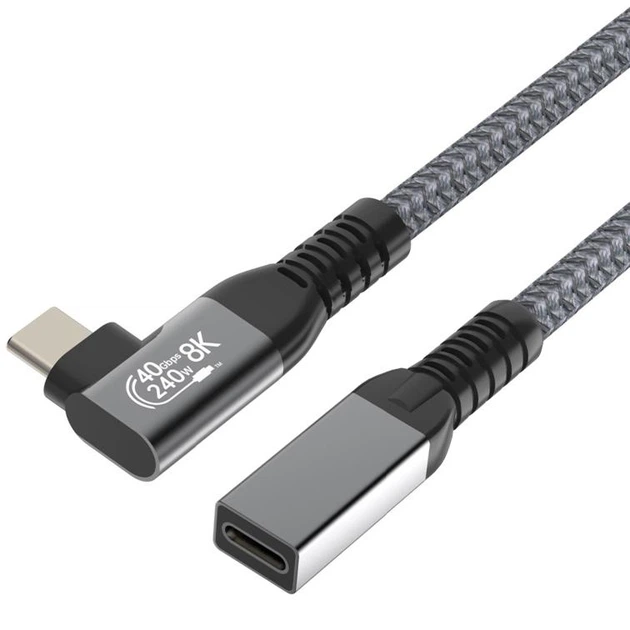 Кабель подовжувач кутовий 90 градусів Type-C – Type-C USB 4.0 Gen2 PD 240W Thunderbolt 4 0.2 м Сірий