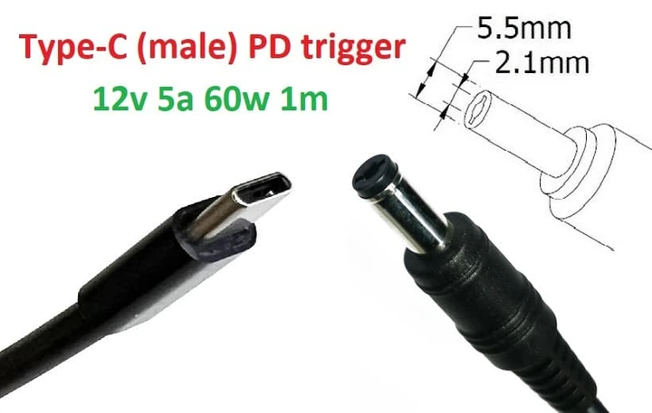 Кабель-перехідник для роутера тригер PD 12v Type-C max 5a 100w на 5.5x2.5mm A class 1 день гар.