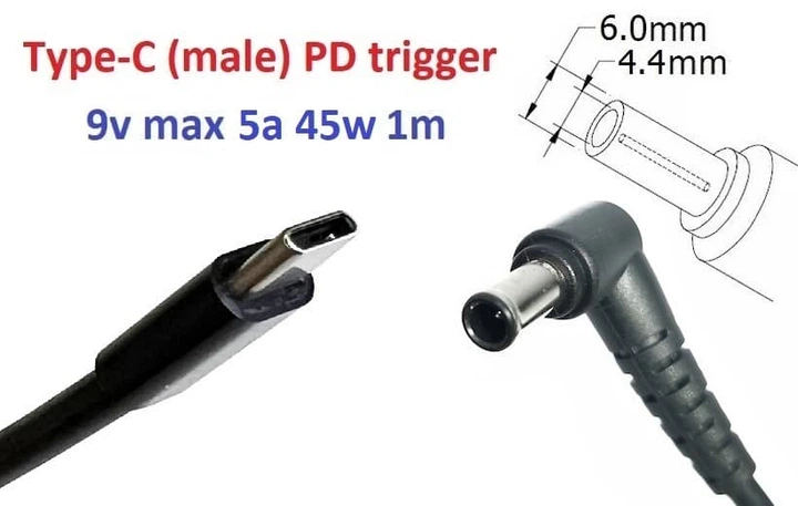 Перехідник для роутера 9v (3a, 27w) 6.0x4.4 or 6.5x4.0mm (+pin) 1m з USB Type-C (male) Power Delivery PD тригер (A class) 1