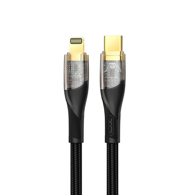 Кабель XO NB-Q223A Transparent Gold Plated Series Type-c to Lightning 27W Braided Data Cable Black