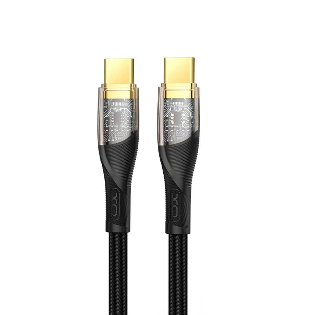 Кабель XO NB-Q223B Transparent Gold Plated Series Type-c to Type-c 60W Braided Data Cable Black