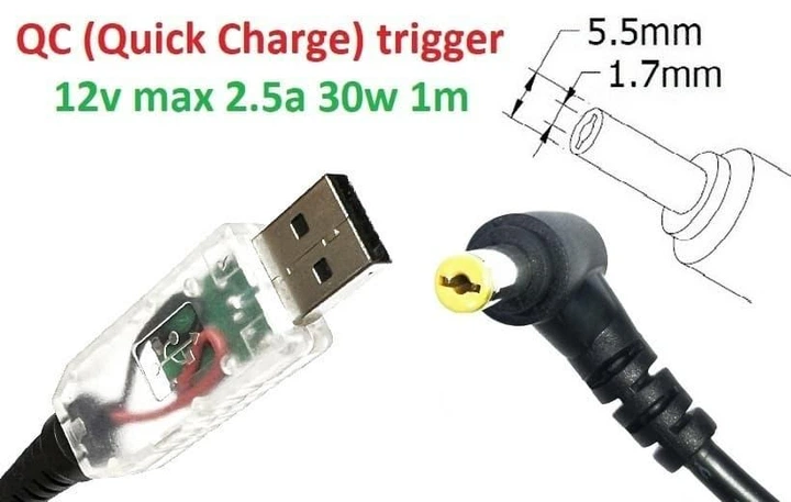 Кабель-перехідник для роутера тригер QC Quick Charge 12v USB Type-A max 2.5a 30w 2.0x0.6 1.0 mm A class 1