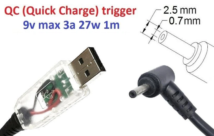 Кабель-перехідник для роутера тригер QC Quick Charge 9v USB Type-A max 3a 27w 2.5 2.35 x0.7mm A class 1 день