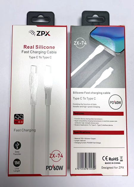 Кабель для швидкої зарядки ZPX ZX-74 Type-C Type-C 60W силіконовий 1 м