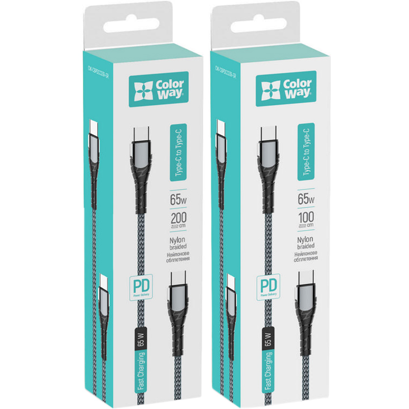 Комплект кабелів COLORWAY USB-C-USB-C 65W 1м + 2м Grey (CW-CBPDCC040-GR/CBPDCC039) CW-CBPDCC040-GR/CBPDCC039
